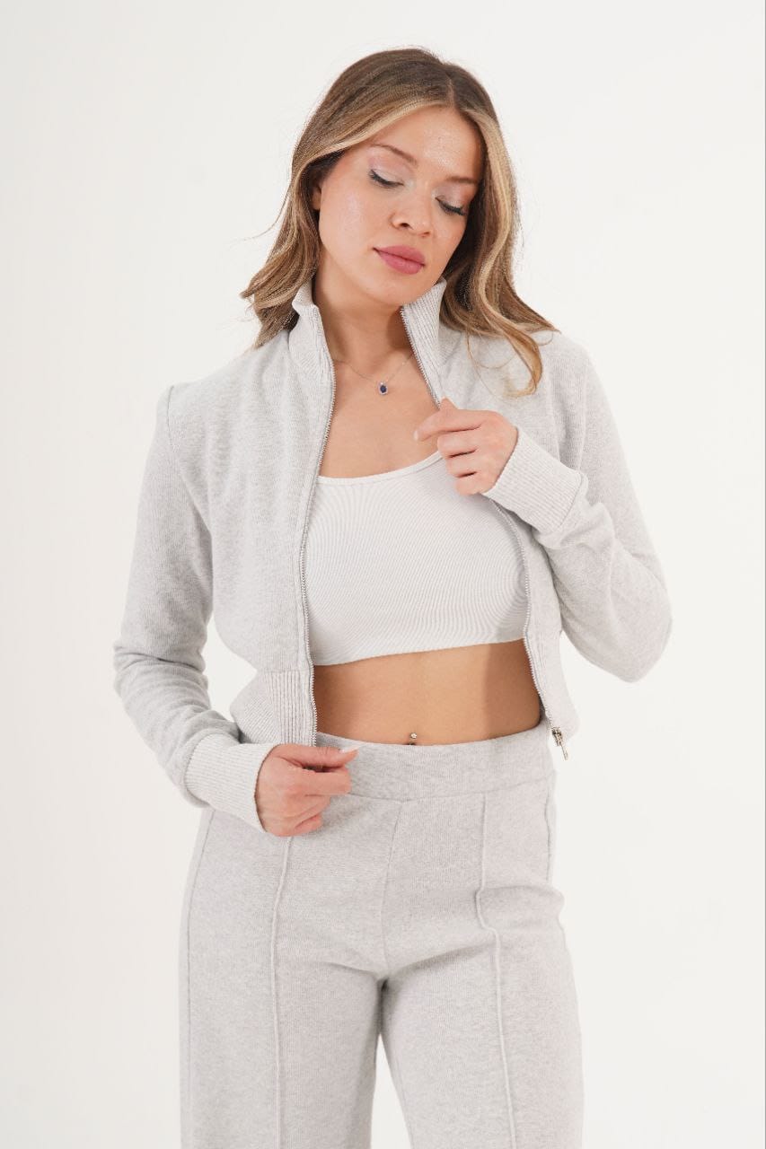 Elevate Your Everyday Layering The Serene Zip-Up Jacket is engineered for the woman who wants to look "put-together" while staying completely comfortable. The heather grey tone offers a clean, minimalist aesthetic that acts as a perfect neutral for any outfit. Its mid-weight fabric provides enough insulation for breezy mornings without feeling heavy or bulky.