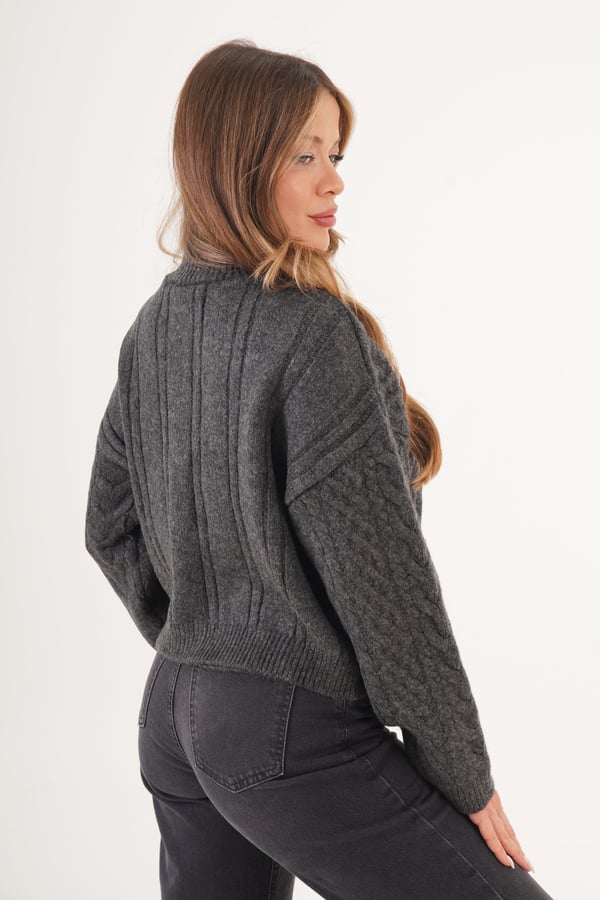 Our Wholesale Mock Neck Cropped Cable Knit Sweater is designed for the modern woman who values both style and substance. Featuring an intricate, chunky cable knit weave, this sweater provides rich texture and dimension that instantly upgrades any outfit.