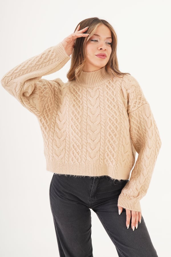 Wholesale Women’s Cozy Mock Neck Cropped Cable Knit Sweater